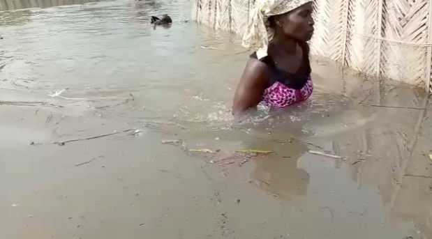 Woman trudging through the water to save her belongings Leave a Comment / By Della Quashie / October 24, 2023